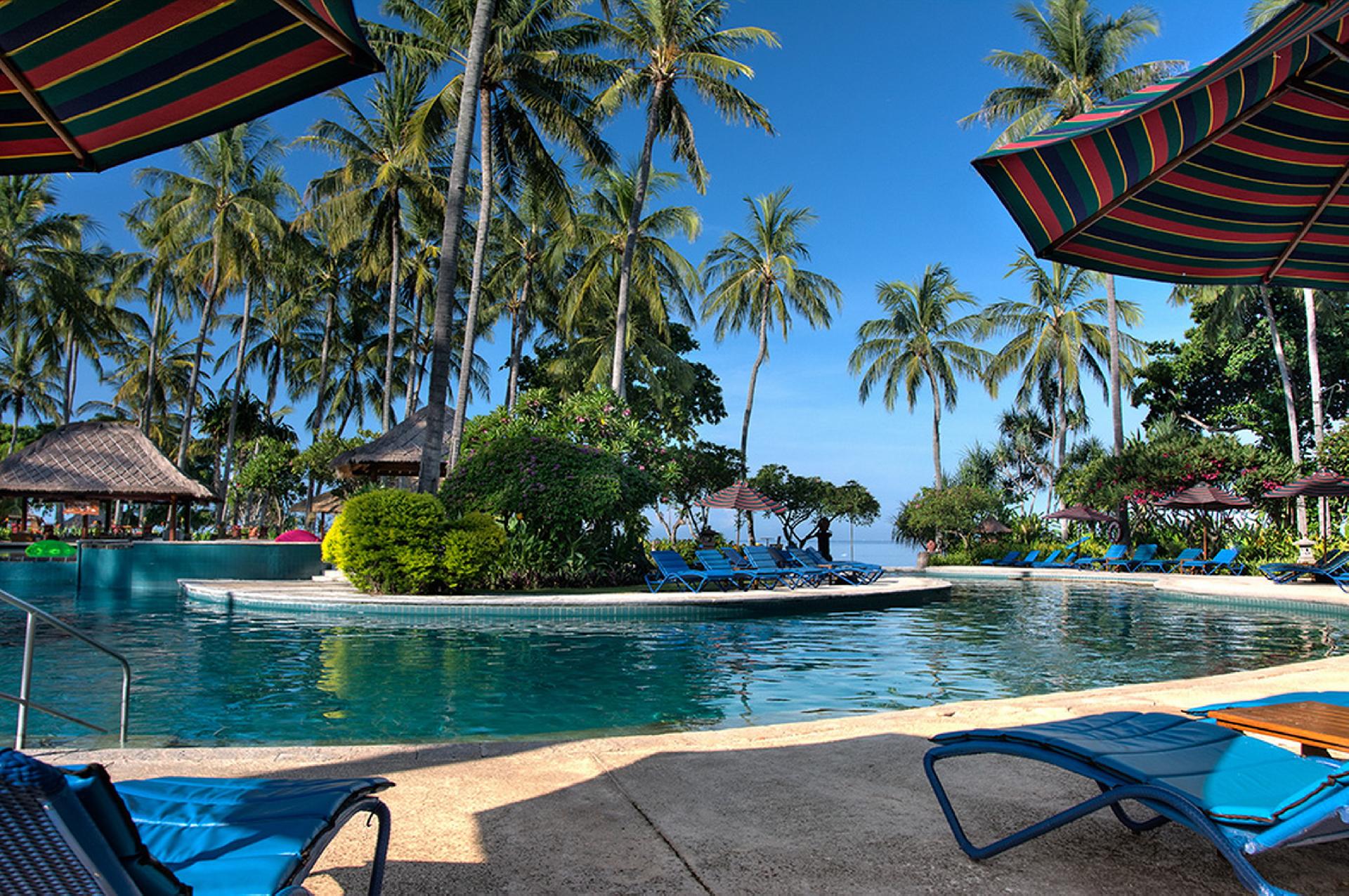 poklidný hotelový komplex se 187 pokoji se nachází 5 km od střediska Senggigi. V nabídce jsou pokoje typu Standard s výhledem do zahrady. Plážové bungalovy a rodinné apartmány jsou za příplatek.