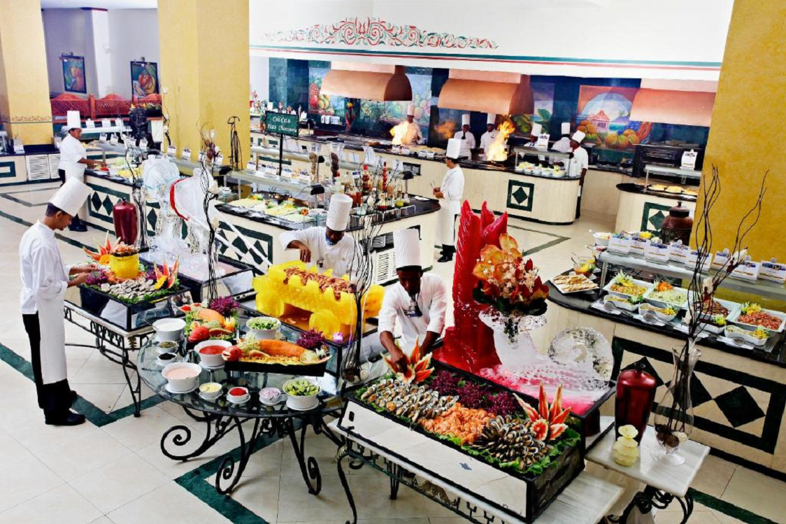 All Inclusive (24 hod.) zahrnuje: snídaně, obědy i večeře formou bufetu v hlavní restauraci, snacky a neomezená konzumace nealkoholických a místních alkoholických nápojů během dne