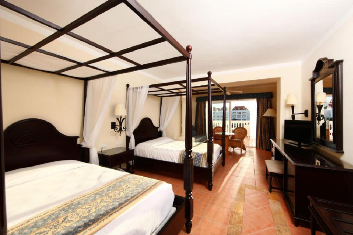 koupelna s jacuzzi, WC, fén, klimatizace, sat. TV, telefon, trezor (za poplatek), minibar (voda, nealko, pivo), žehlička a žehlící prkno, a balkón nebo terasa.