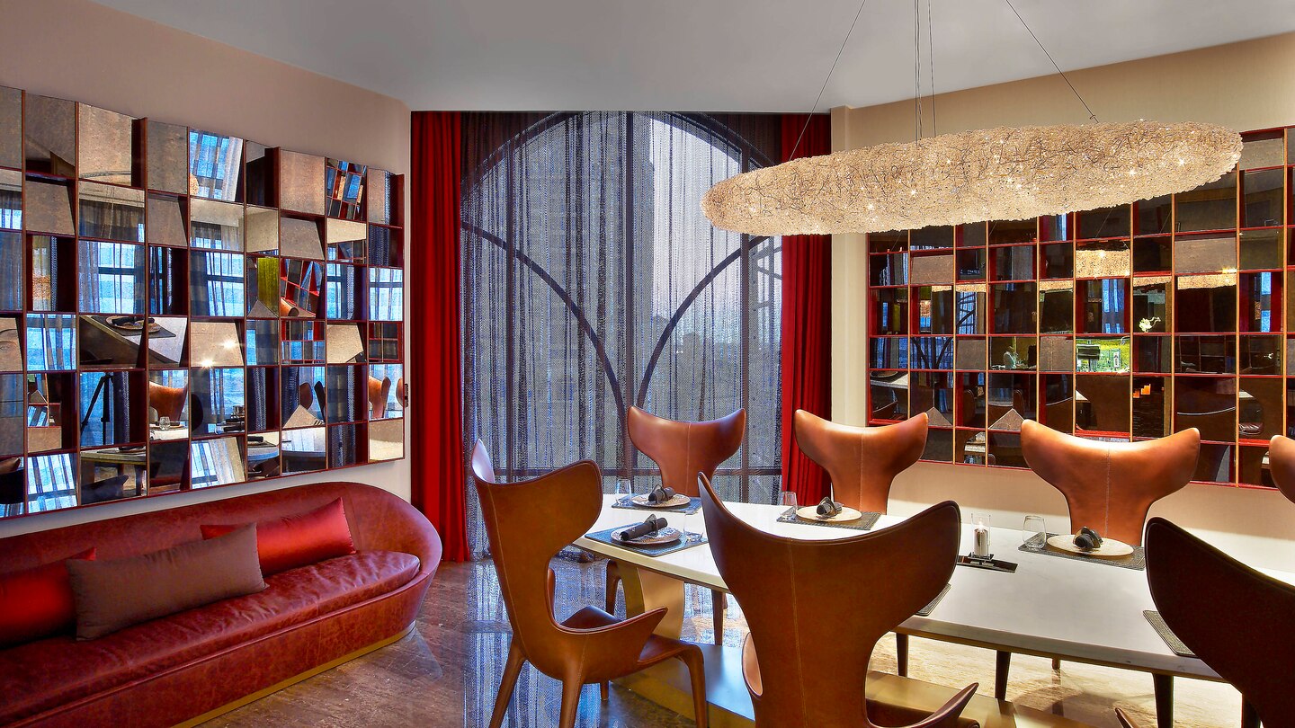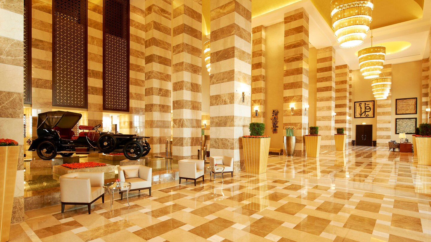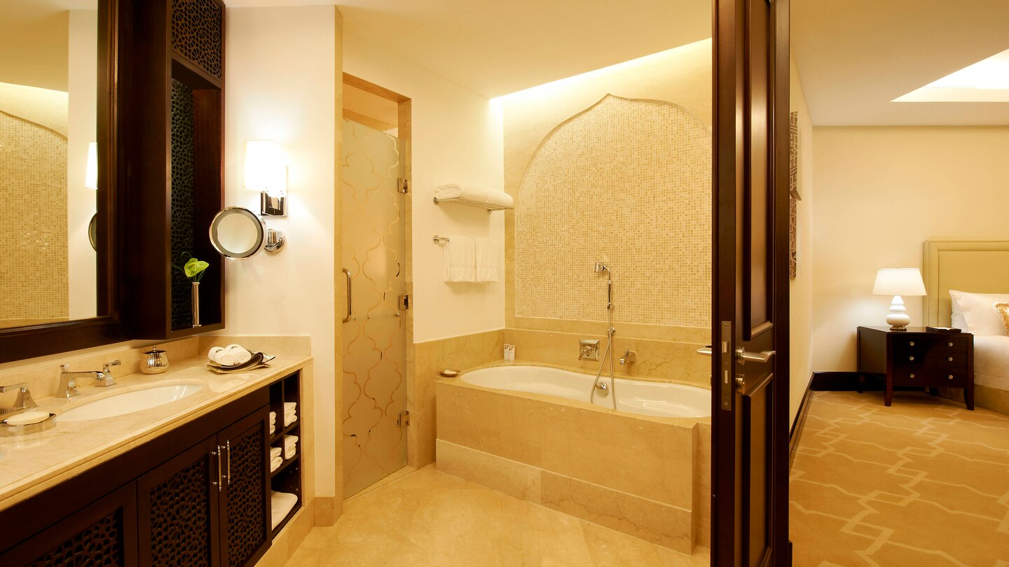 restaurace s mezinárodním bufetem a americkou snídaní, tematické restaurace: Oyster Bay & Bar – karibská, Hakkasan – čínská, Vine restaurant – středomořská kuchyně, Al-Sultan Brahim – seafood, The Raw bar – raw cousine, Opal by Gordon Ramsay – mezinárodní, Astor grill – steak house, Gordon Ramsay restaurace s mezinárodní kuchyní a dvě restaurace s mezinárodní kuchyní The Club a Sarab Lounge, bary, bazény – soukromý bazén, bazén olympijské velikosti, vířivka, obchody.