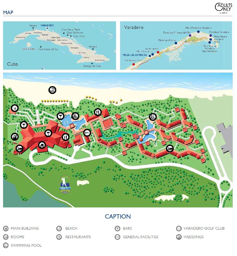 Komfortní hotel se nachází uprostřed tropické zahrady, cca 36 km od letiště Varadero, cca 7 km od turistického centra, přímo u krásné písečné pláže. Přímo u hotelu najdete golfové hřiště a nákupní centrum Las Americas. V hotelu je možné ubytovat pouze dospělé klienty (starší 18 let).