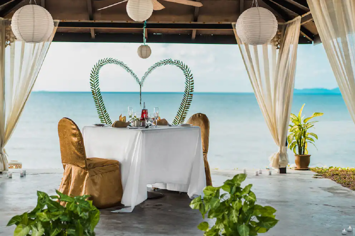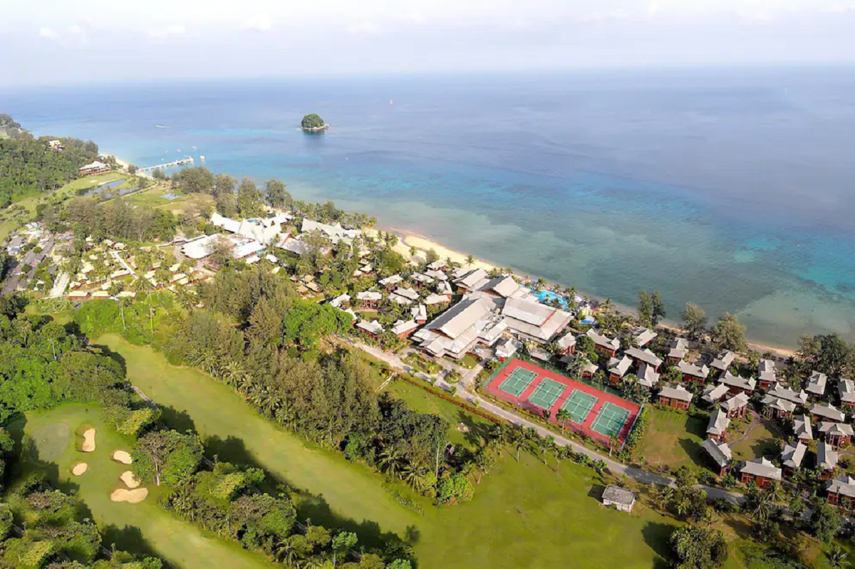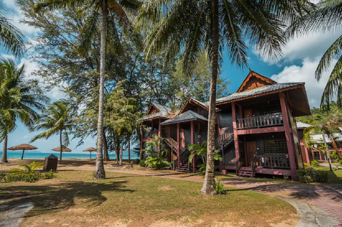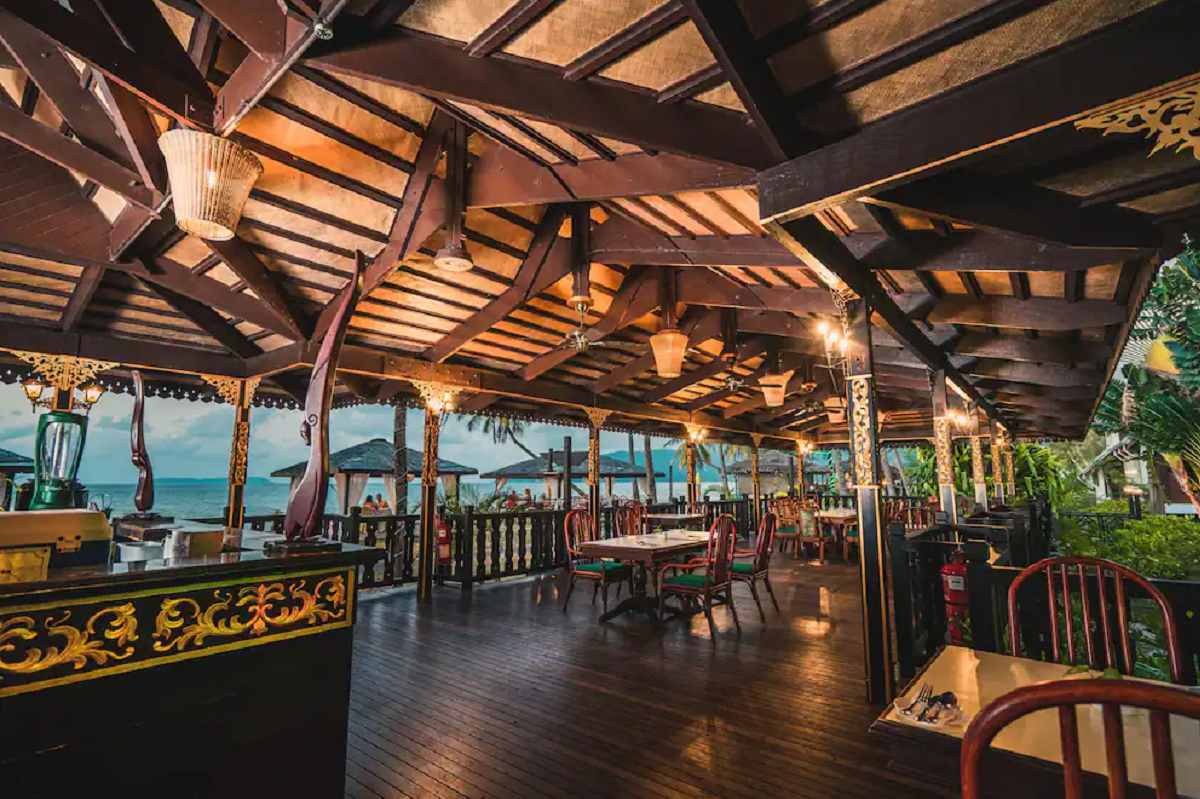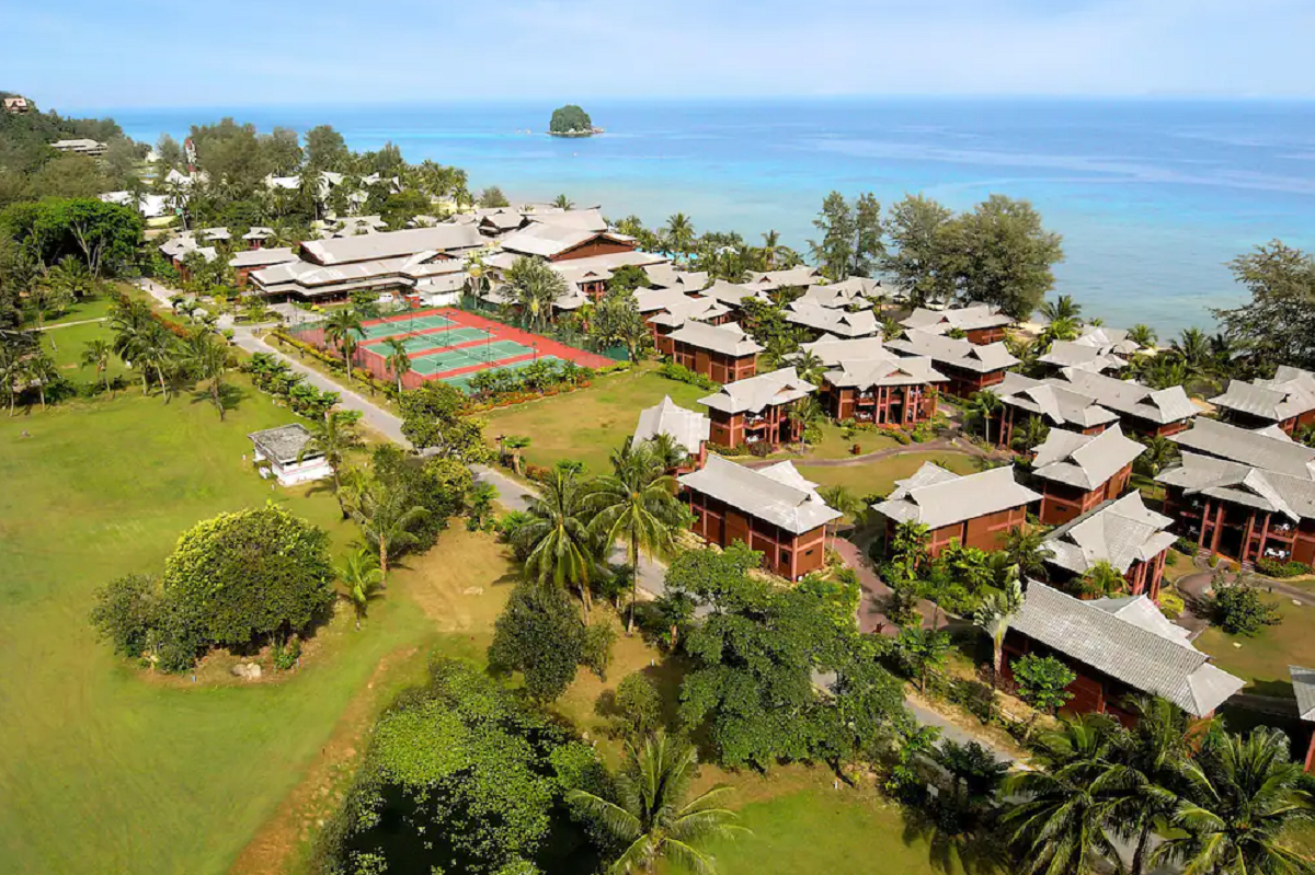 luxusní hotel na nejhezčí pláži ostrova. Pavilóny v tradiční malajském stylu.