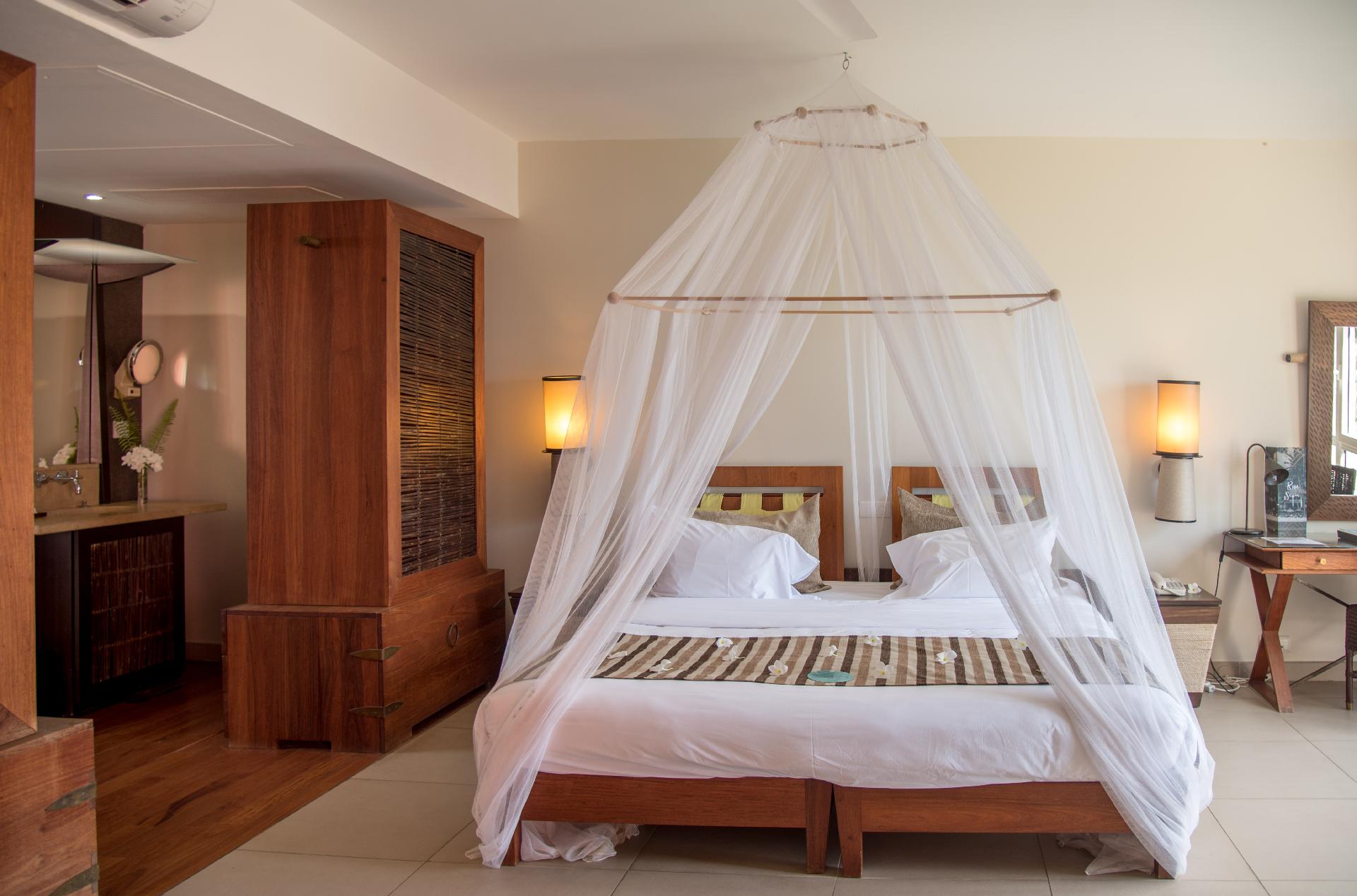 suity s výhledem do zahrady, bazén či moře vybaveny terasou nebo balkonem, klimatizací s individuálním ovládáním, plazmovou TV s DVD přehrávačem, telefonem, WIFI, trezorem, barem, kávovarem, vysoušečem vlasů. Suity deluxe a executive mají vlastní bazének. Všechny suity mají také oddělený obývací kout a jsou vhodné pro rodiny.
