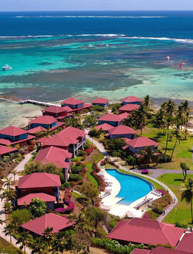 lkomfortní ubytování v 50 apartmányech v 18 vilách se nachází uprostřed krásné tropické zahrady na východním pobřeží ostrova, u městečka Francois, asi 25 km od letiště