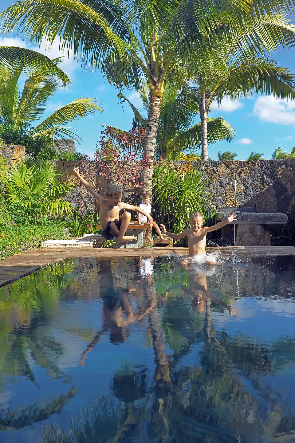 Luxusná dvojizbová vila s pôvabnou šindľovou strechou sa nachádza uprostred tropickej záhrady a je ako stvorená k rodinnému pobytu. Spálne sú vybavené manželskými posteľami alebo oddelenými lôžkami. Súčasťou je kuchyňa, obývacia priestor, súkromná záhrada s grilom, jedáleň a vlastný vonkajší bazén. K dispozícii sú aj dve kúpeľne - jedna disponuje vonkajšou sprchou a hlbokú vonkajšie vaňou, druhá je zariadená vnútornej sprchou. Vila je vybavená klimatizáciou, satelitnou TV, súpravou na žehlenie, zvukovým systémom, trezorom, bezplatným Wi-Fi pripojením, IP telefónom, minibarom, súpravou na prípravu čaju a kávy a kávovarom Nespresso. Ubytovanie je možné pre 4 dospelé osoby a 1 dieťa.