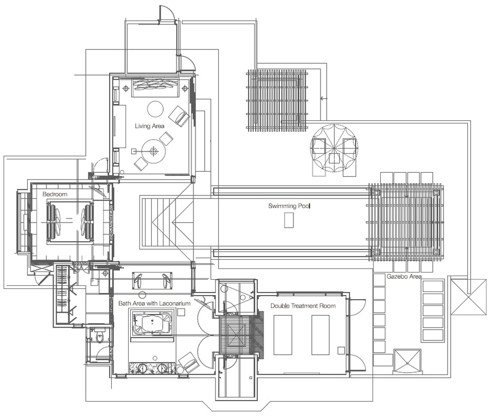 Ako v súkromných kúpeľoch si budete pripadať v jednej z dvoch exkluzívnych Spa Villas. Tie sú určené pre páry, ktoré túžia po pokoji a relaxácii. Srdcom vily je sčasti zastrešený bazén na záhrade, ktorá sľubuje maximálne súkromie. Oddýchnite si v altánku pri bazéne, nechajte masérky, aby vás rozmaznali pri niektorej z masáží vo vašom súkromnom masážnom pavilóne. Doprajte si relaxáciu vo vírivke, parnej sprche alebo v saune. K štandardnému vybaveniu patrí LCD TV, Mac mini s iPod prípojkou, Wi-Fi, fén, klimatizácia, minibar, chladič na víno a vybavenie na prípravu čaju a kávy.