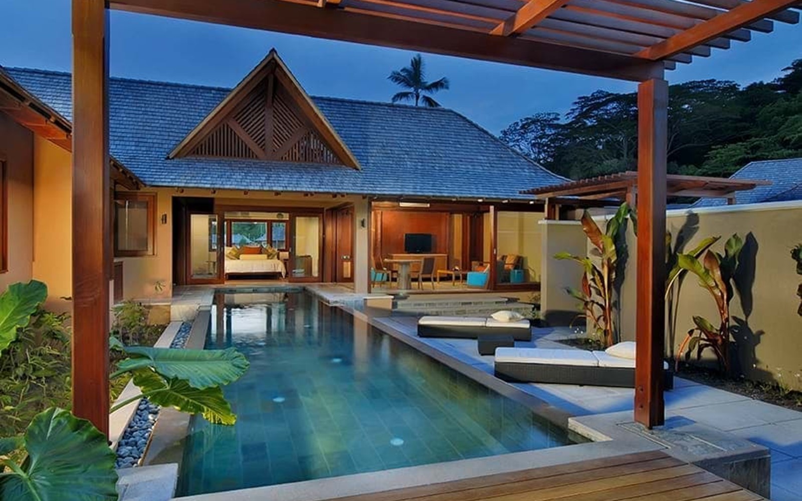 Totálna eufóriu z dychberúceho výhľadu zažijete, ak sa ubytujete v Hillside Villa, ktorá sa týči na kopci v obklopení bujnej zelene. Vila s jednou spálňou ponúka romantické útočisko zamilovaným dvojiciam. Pri kúpaní v súkromnom bazéne na rozľahlej terase nebudete vedieť, kde končí nebo a začína oceán. Presklenná stena v spálni vám dovolí prebúdzať sa každé ráno v priestrannej manželskej posteli s nádherným výhľadom na zátoku. K štandardnému vybaveniu patrí LCD TV, Mac mini s iPod prípojkou, Wi-Fi, fén, klimatizácia, minibar, chladič na víno a vybavenie na prípravu čaju a kávy.