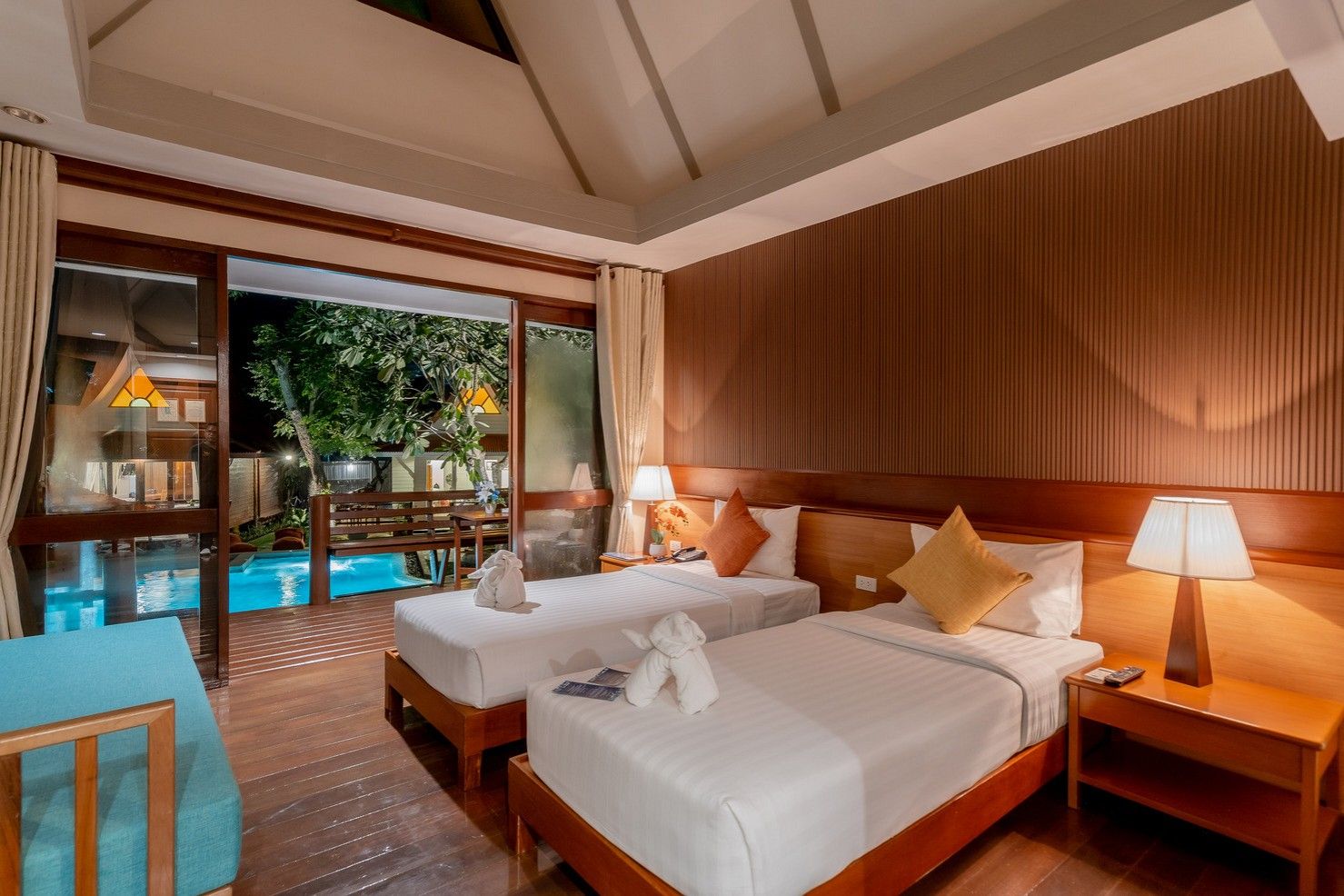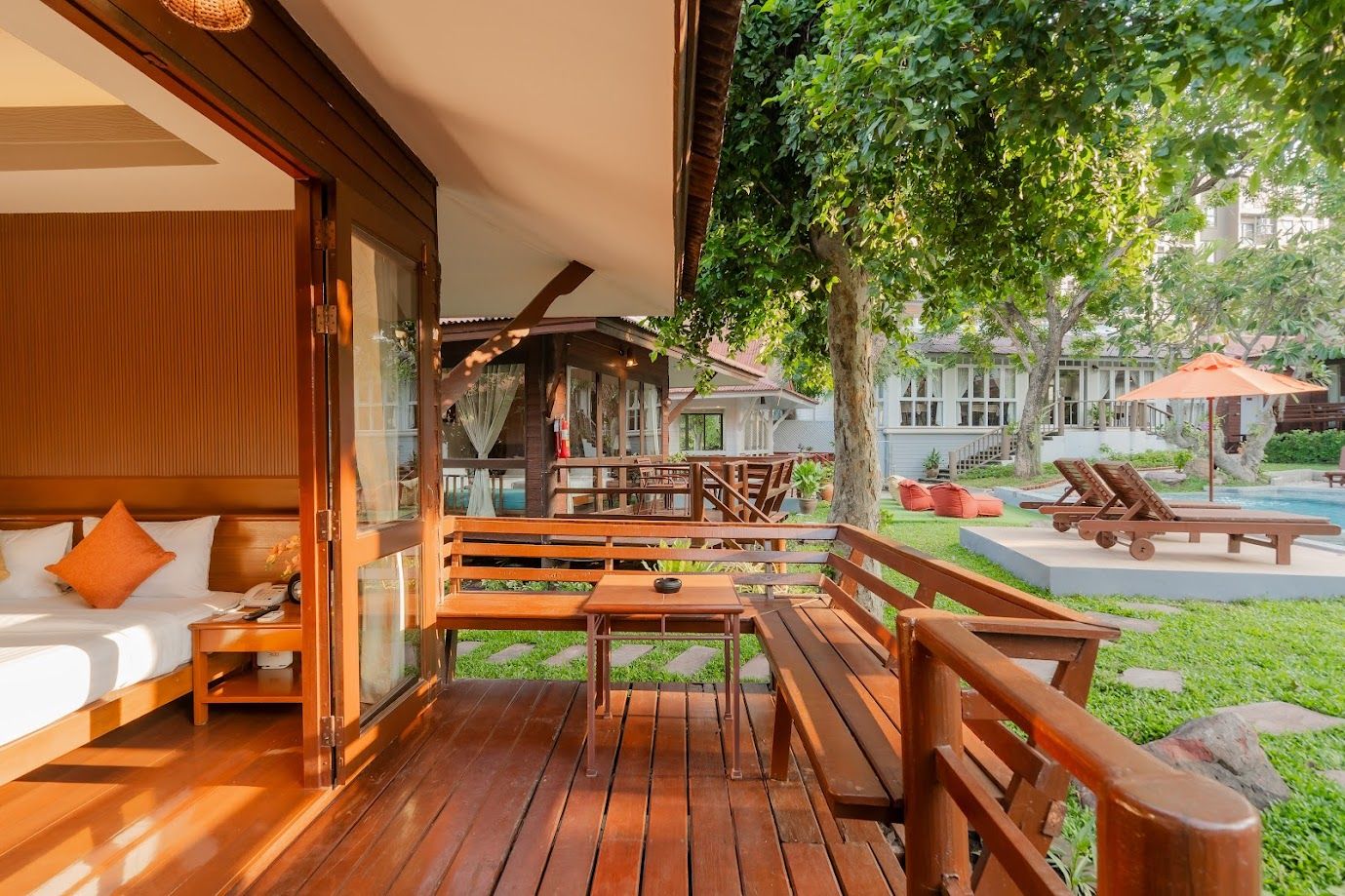 Resort nabízí ubytování bungalovech v thajském stylu v krásné tropické zahradě. Hotel je doslova útočištěm uprostřed přírody. Je vhodný jako pro páry, kteří hledají relax a pohodu, tak i pro rodiny s dětmi, které nevyhledávají organizovanou zábavu. Do samotného centra Hua Hin je to 15 minut autem, ale i v blízkém okolí hotelu naleznete pár restaurací, obchodů a barů. V základní nabídce jsou pokoje typu Lux Suite pool.