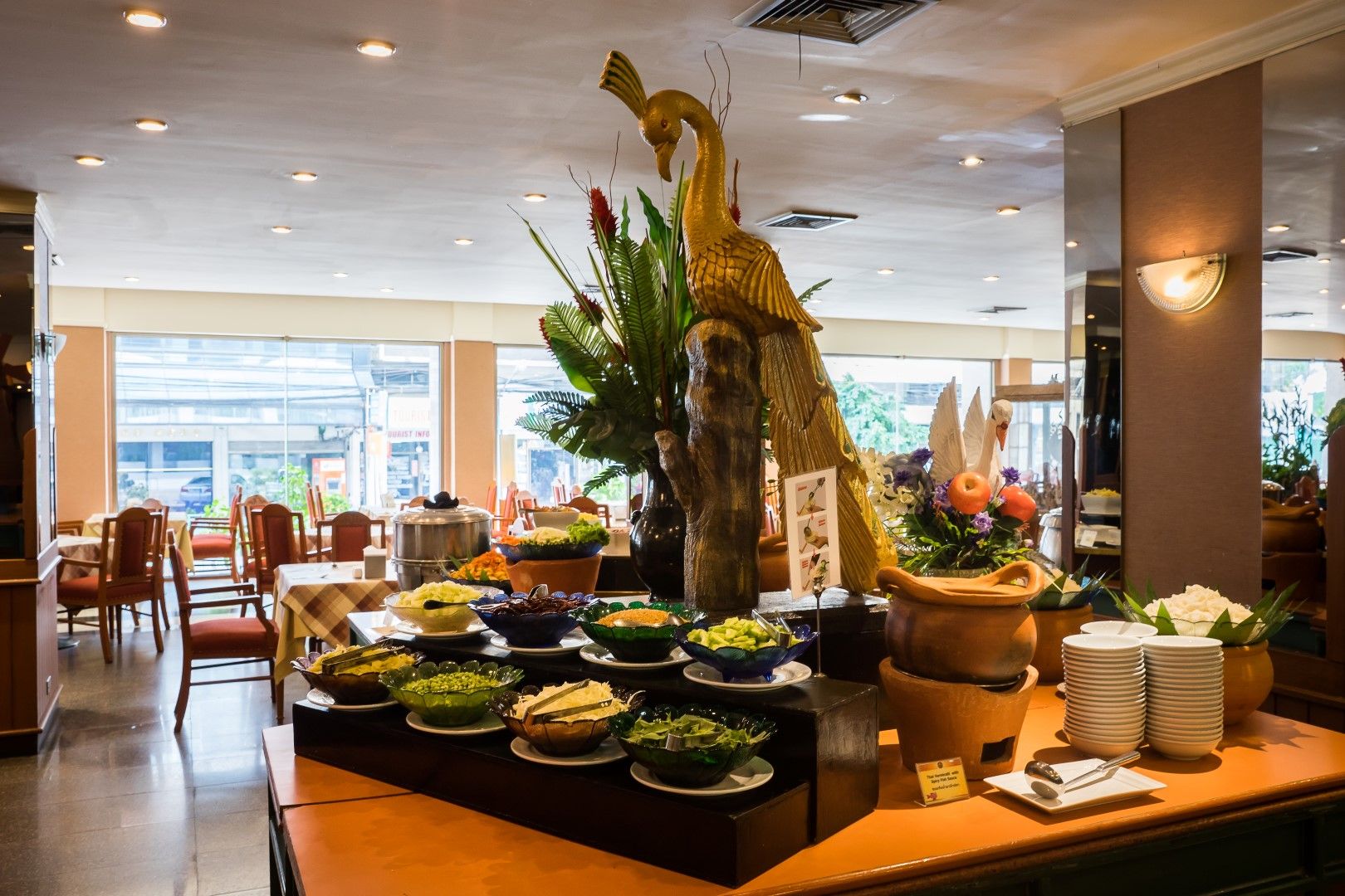 V ceně zájezdu je zahrnuta vždy snídaně, která je většinou podávána formou švédských stolů, u některých hotelů a la carte. Ostatní stravování během dne není v ceně zájezdu a je indivuduální starostí klienta. Výdaje na stravu se pohybují mezi cca 300 - 500 THB na osobu a den. U zájezdů trvajících dva týdny doporučujeme cca 500 - 600 USD/osoba. Platební katrou lze platit v hotelech, některých restauracích a kamenných obchodech. Thajská kuchyně je známá svou znamenitou chutí a rozmanitostí. Thajci svá jídla rádi ochucují různými druhy koření, maso bývá nejčastěji rozkrájeno na malé kousky. Jako příbor používají vidličku a lžíci. V restauracích se nejlépe domluvíte anglicky.