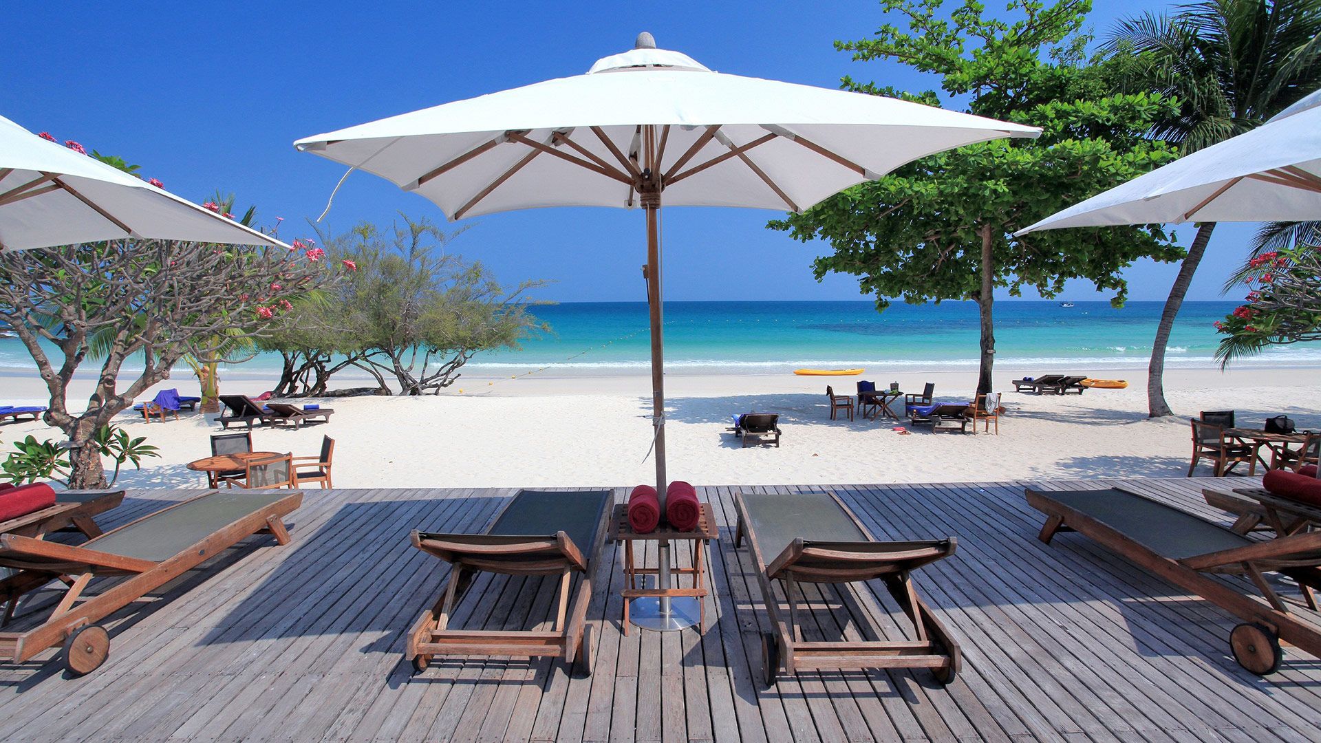 PLÁŽ: prostorná soukromá pláž s bílým pískem přímo před hotelem.