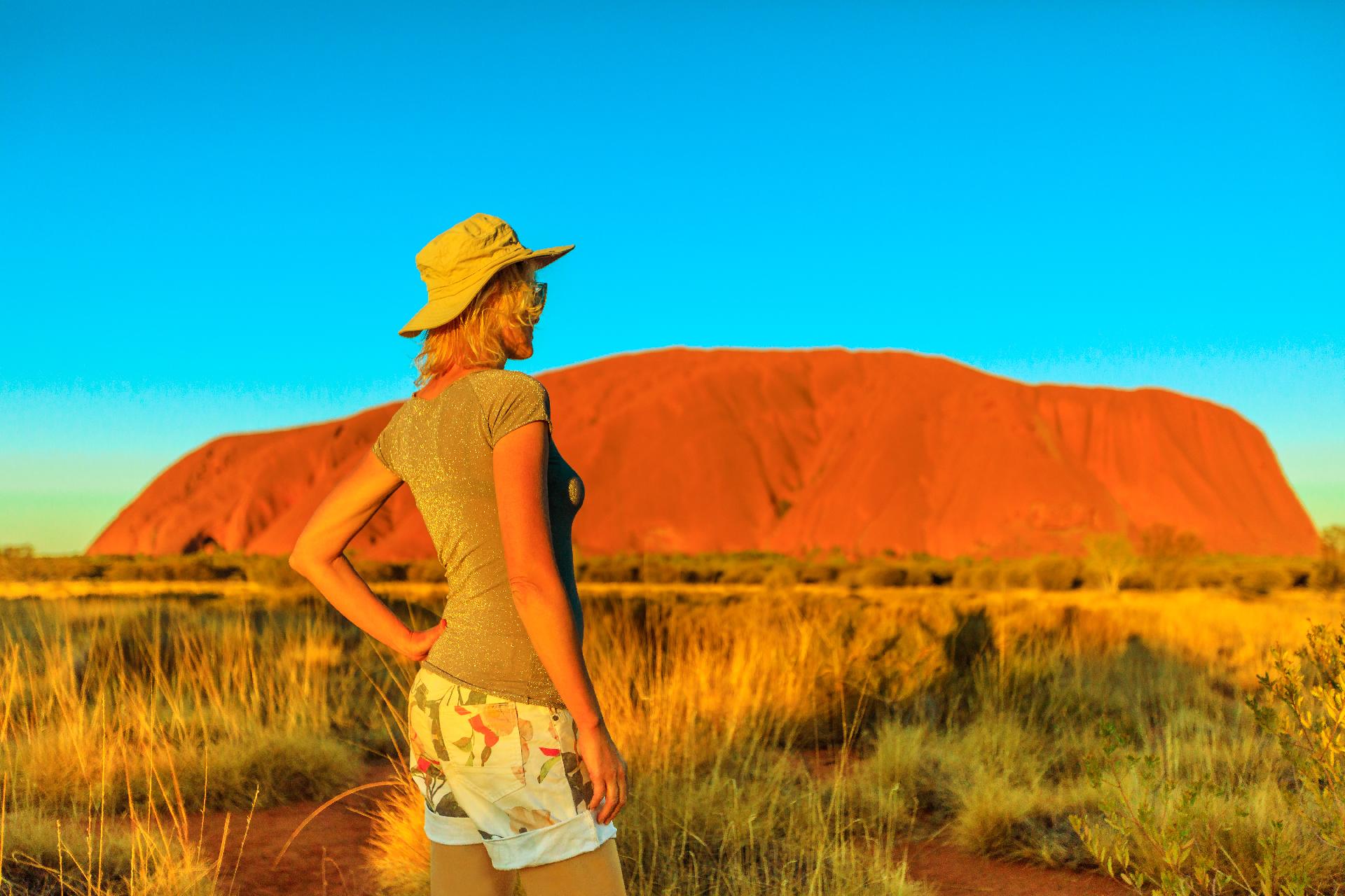 Možnost nevšedního prožitku, východu slunce v poušti s vyhlídkou na Ayers Rock (Uluru). Dopoledne okružní prohlídka tohoto největšího a nejslavnějšího monolitu světa. Odpoledne prohlídka skalních útvarů Olgas. Večer možnost večeře „za zvuků ticha pouště" – Sounds of Silence.