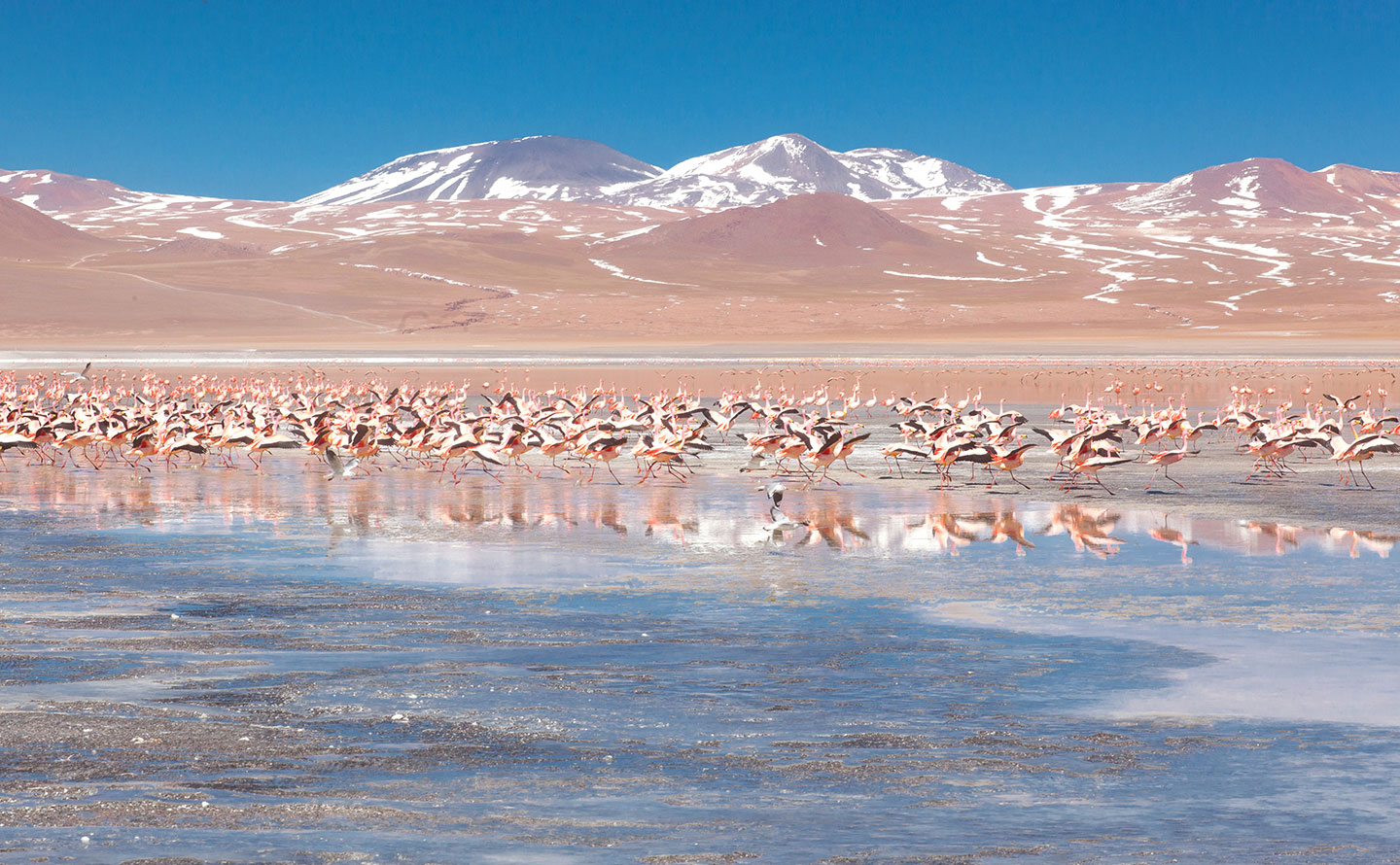 Přejezd do Bolívie úžasnou krajinou, jedním z nejizolovanějších koutů planety, mj. kolem jezer Laguna Verde a Colorada, kolem vulkánu Licancabur (5960 m). Přírodní rezervace Eduardo Avaroa, známý „zkamenělý strom“ Arbol de piedra, gejzíry a fumaroly, pozorování zvěře včetně až 3 druhů plameňáků a divokých vikuní v oblasti s nadmořskou výškou přes 4000 metrů.