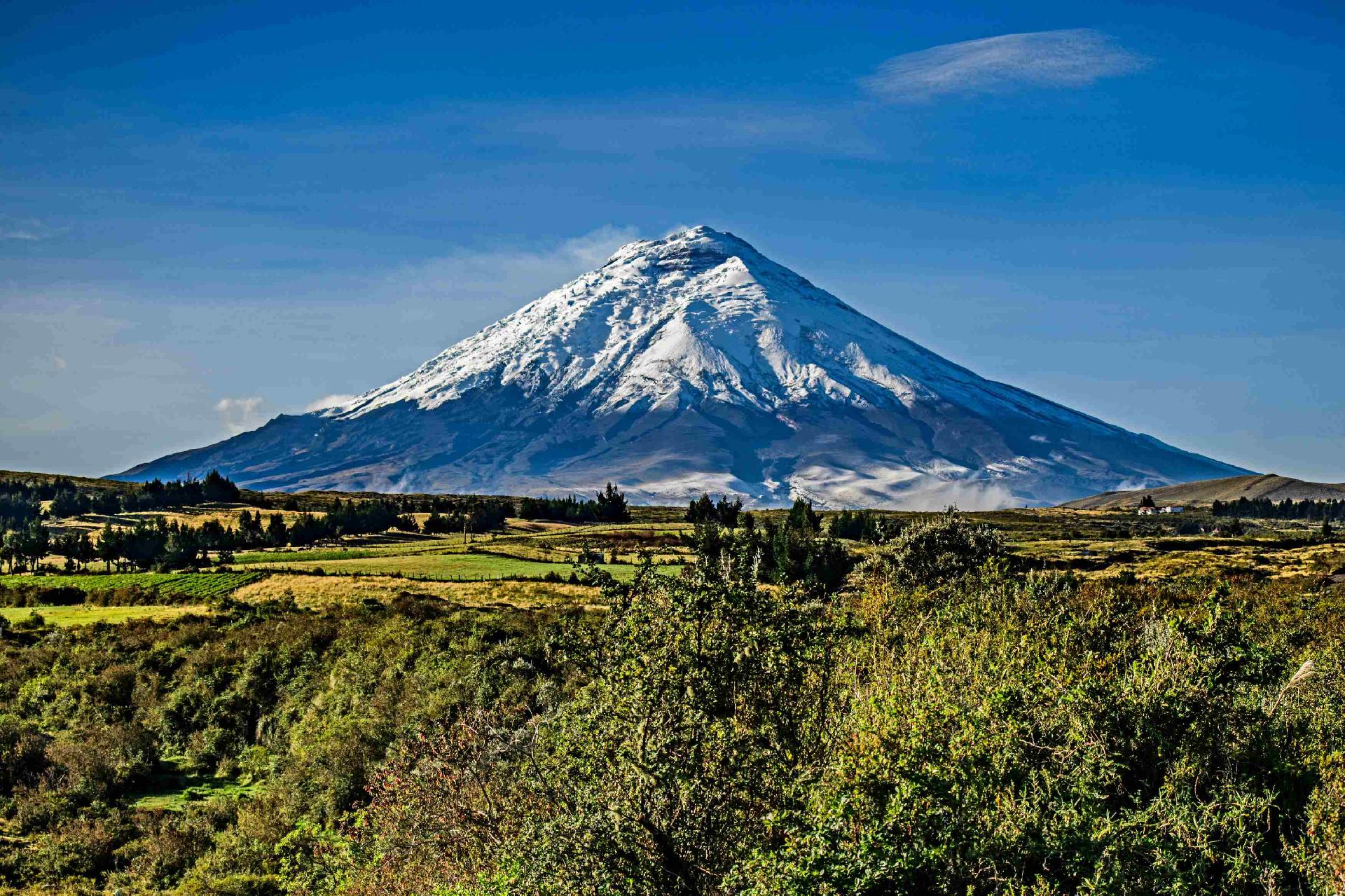 Zažijte sílu majestátního, stále aktivního vulkánu Cotopaxi, nejvyššího sopky Ekvádoru, obklopeného malebnou horskou krajinou.