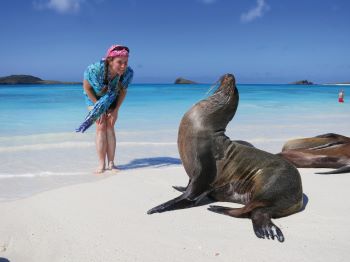 Pláž na ostrůvku Lobos je domovem kolonie galapážských lachtanů. Stejně jako na jiných místech souostroví se tu můžete přiblížit k pečujícím samicím na pár metrů a pozorovat jejich něžné chování k mláďatům. V období rozmnožování se přidávají i teritoriální samci, kteří si hájí své části pláže a „harém“.