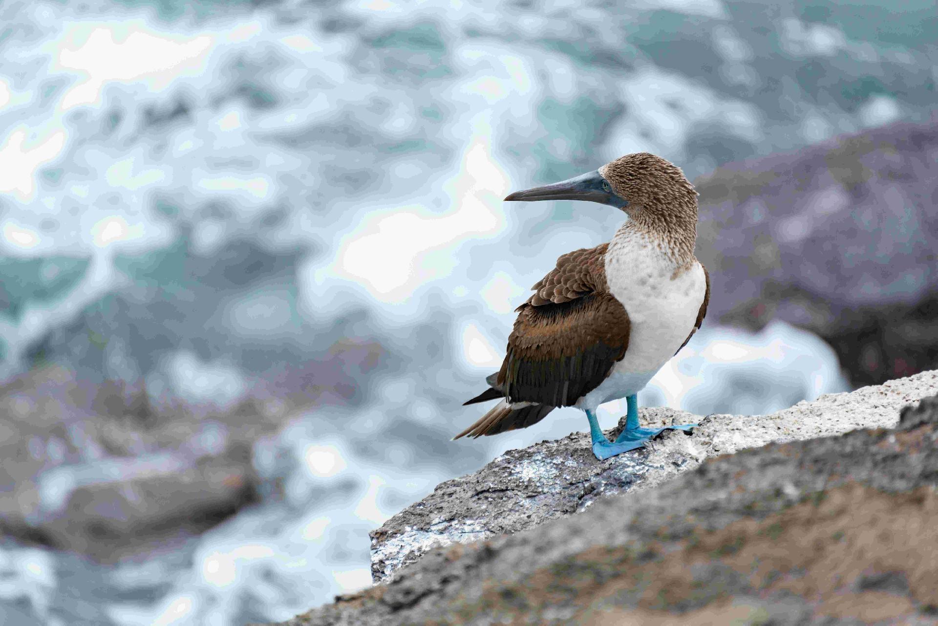 Tento nízký ostrůvek ale obývá víc než jen lachtani. Hnízdí tu i dvě ikonické ptačí druhy – terej modronohý a fregatka velká. Samičky se snaží zaujmout tančící samečci: terejové komicky předvádějí svá jasně modrá chodidla, zatímco fregatky nafukují ohromné červené vaky pod zobákem. V době hnízdění je tu živo – mláďata křičí o potravu a jakmile zesílí, učí se létat.