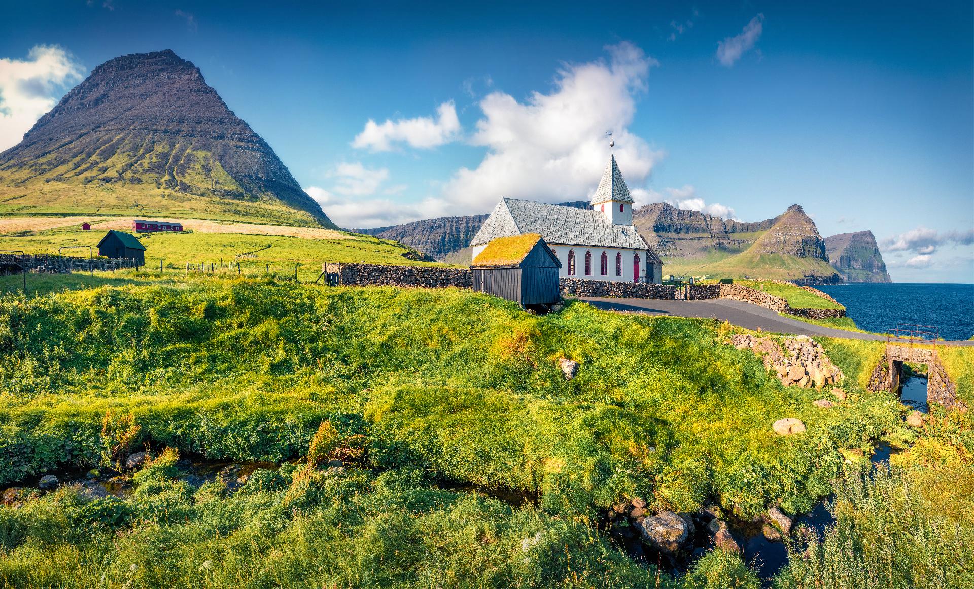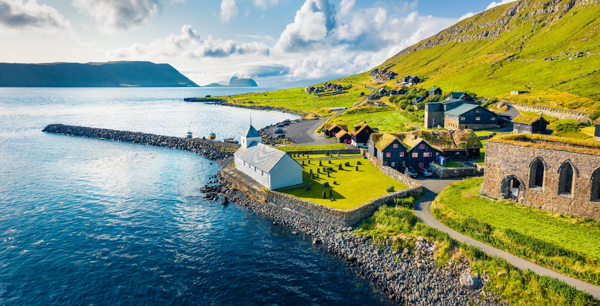 Snídaně v hotelu, odjezd do historické vesnice Kirkjubøur, prohlídka zříceniny katedrály Magnus z doby kolem r. 1300, kostela svatého Olava z 12. století a starého statku Kirkjubøargarður z 11. století, který stále obývá stejná rodina již po 17 generací. Přejezd do vesnice Saksun, kde se nachází kamenný kostel, starobylá farma i krásné vodopády. Zastávka ve vesnici Tjørnuvík, nejseverněji položené vesnici na ostrově Streymoy s prohlídkou nejstarších vikingských pohřebišť. Odjezd do malebné vesničky Gjógvu, cestou zastávka na nejvyšším bodě Faerských ostrovů. Návrat do hotelu, nocleh Tornshavnu.