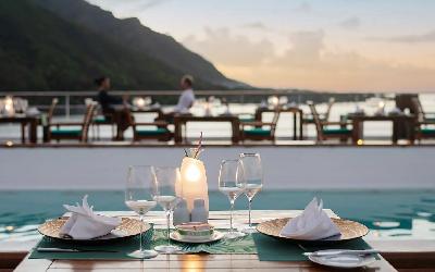 Den strávíte v příjemném odpočinku přerušeném jen decentním zaklepáním kajutového stewarda, který vám právě přinesl koktejl. Ponenáhlu se slunce skloní k obzoru, hladina oceánu se zbarví do odstínů tekutého zlata a purpuru a život na palubě se zahalí do roucha večerní elegance a vy si mimoděk uvědomíte, že loď Paul Gauguin se pomalu stala útulným domovem. Známá zákoutí, oblíbené místo v baru či lodní knihovně a vřelé úsměvy posádky vás vítají jako staré přátele.