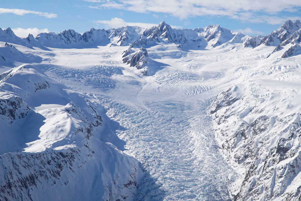Podél pobřeží přejezd k ledovci Fox Glacier, jehož spodní část se nachází ve výšce 250 m nad mořem, a který na své 13km pouti k zemi padá z výšky 2.600 metrů. Pěší výlet k ledovci.