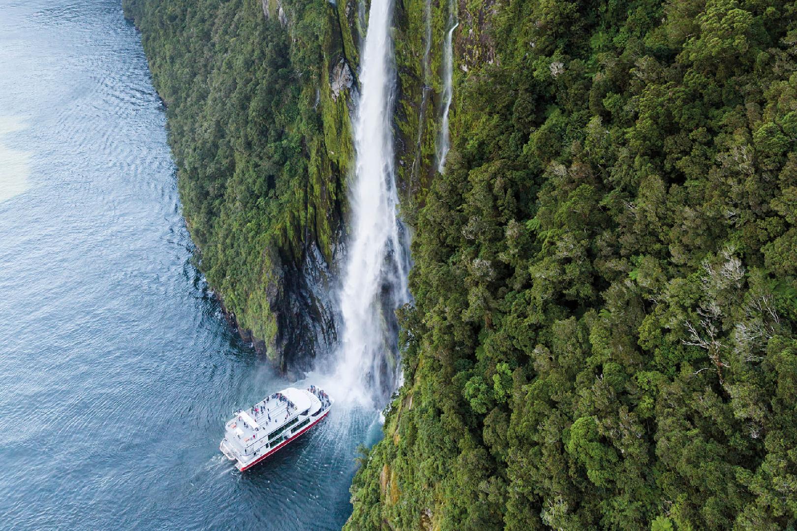 Celodenní výlet překrásnou krajinou k fjordu Milford Sound nebo Doubtfull Sound s výpravnou plavbou lodí až k samotnému hrdlu Tasmanova moře s fascinující krajinou a s vodopády. Nocleh v Te Anau, kde je rovněž možné spatřit unikátní druh jeskynních světlušek.