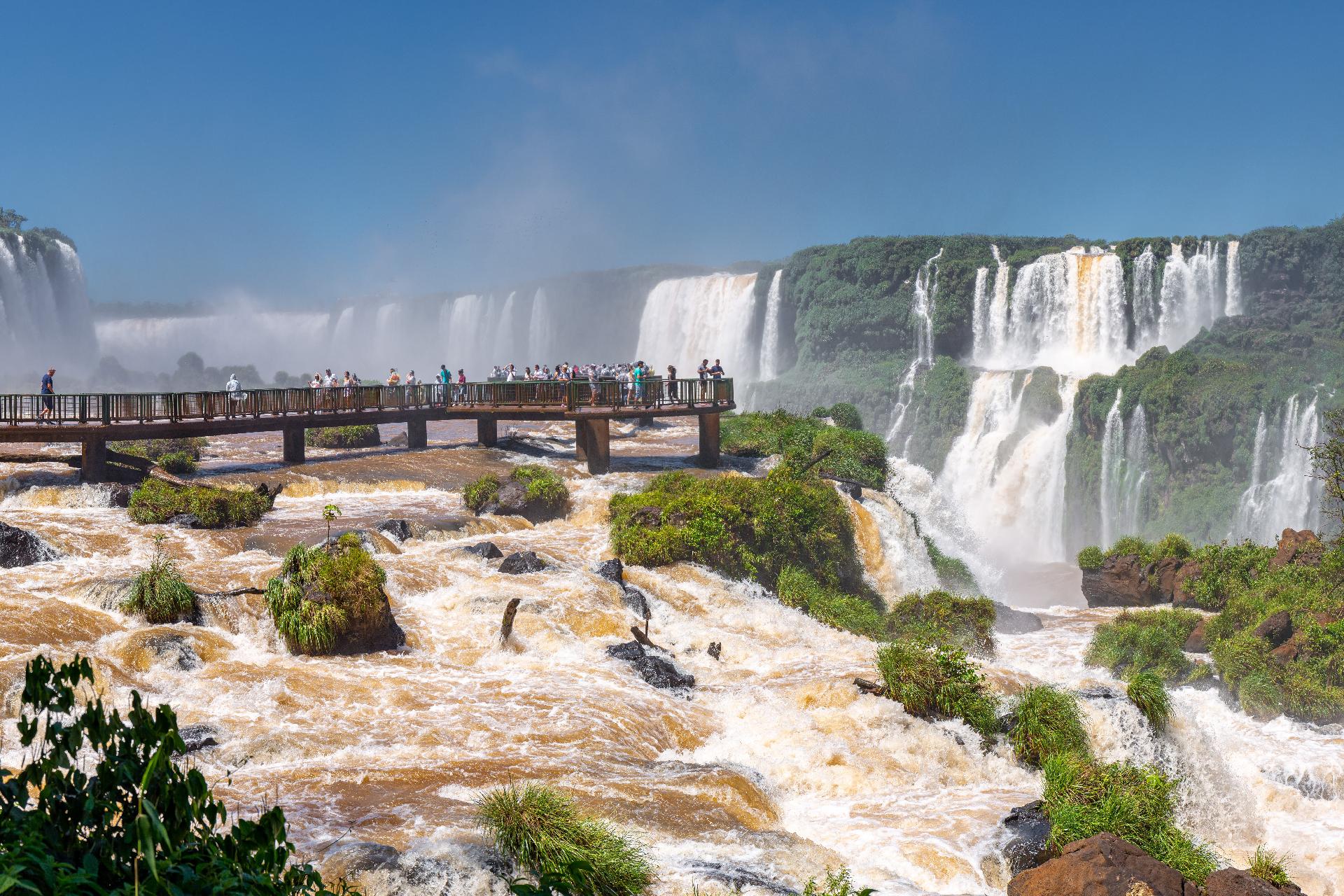 Prohlídka vodopádů Iguacu z argentinské strany. Cesta vláčkem k největšímu vodopádu – k „Ďáblovu chřtánu“, kde se do hlubin valí ohromná masa vody. Pod baldachýnem vodní tříště si můžete vychutnat a zachytit dechberoucí kouzlo majestátních vodopádů. Procházka pokračuje k dalším vyhlídkám, odkud si můžete prohlédnout vodopády ze spodní i horní části. Půvabná duha