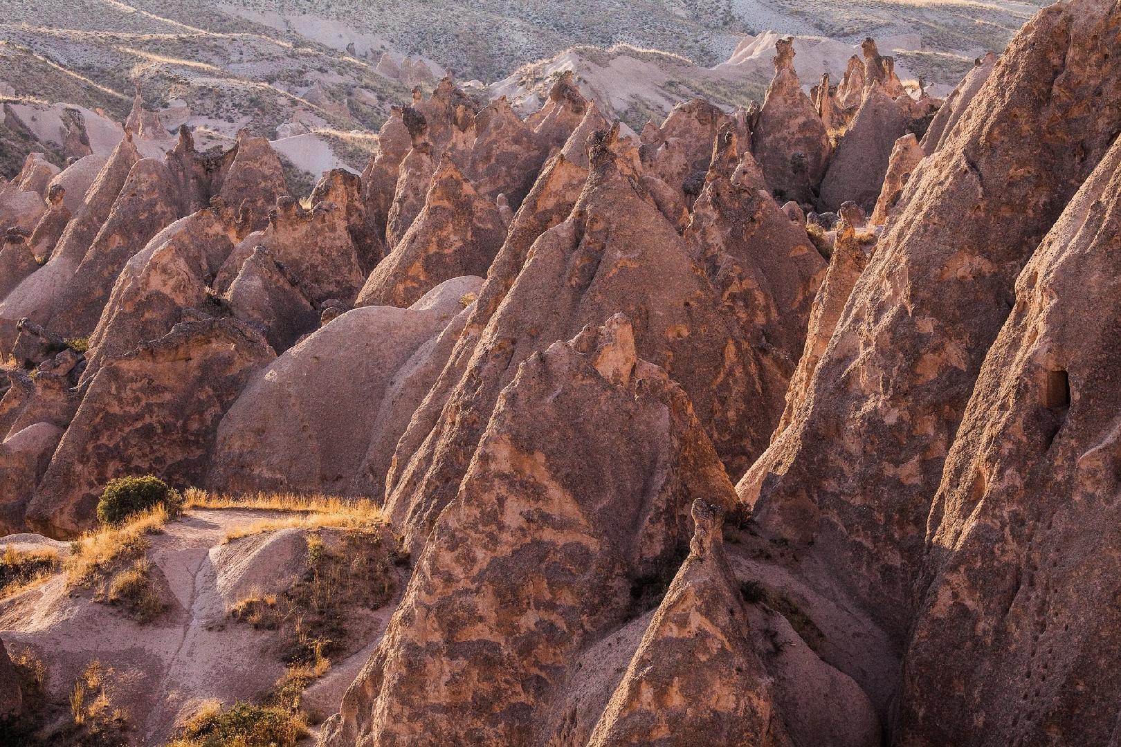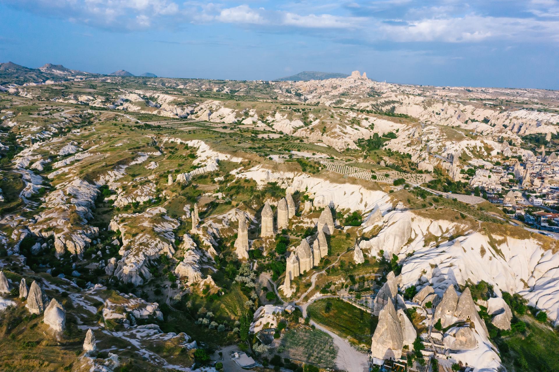 Je proslulá množství skalních útvarů a rozsedlin prapodivného až bizarního vzhledu, spoustou kaňonů a údolí, z nichž většina vznikla erozí nebo ze sopečného popela. Jsou však i dílem lidských rukou. Skalní města, mnohá i v podzemí propojena kilometry chodeb sloužila především křesťanům jako úkryt před pronásledovateli.